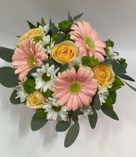 Эта восхитительная композиция в шляпной коробке – настоящий карнавал красок и ароматов. В ней сочетаются нежные герберы, излучающие свою радостную энергию, розы, символизирующие любовь и страсть, а также хризантемы, приносящие в дом уют и умиротворение. Каждый цветок, будто аккорд в гармоничной мелодии, создает удивительное впечатление и захватывает своей красотой. Зелень, украшающая композицию, словно танцует вокруг цветов, придавая им особую изящность и свежесть. Шляпная коробка, олицетворяющая элегантность и изысканность, подчеркивает утонченность этой композиции.
